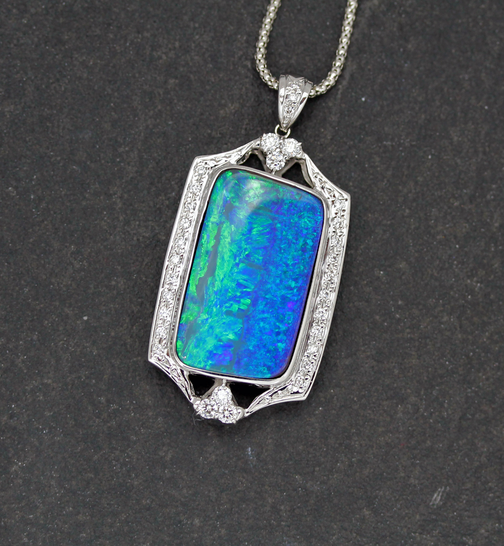 ボルダーオパール ダイアモンド ペンダント ネックレス