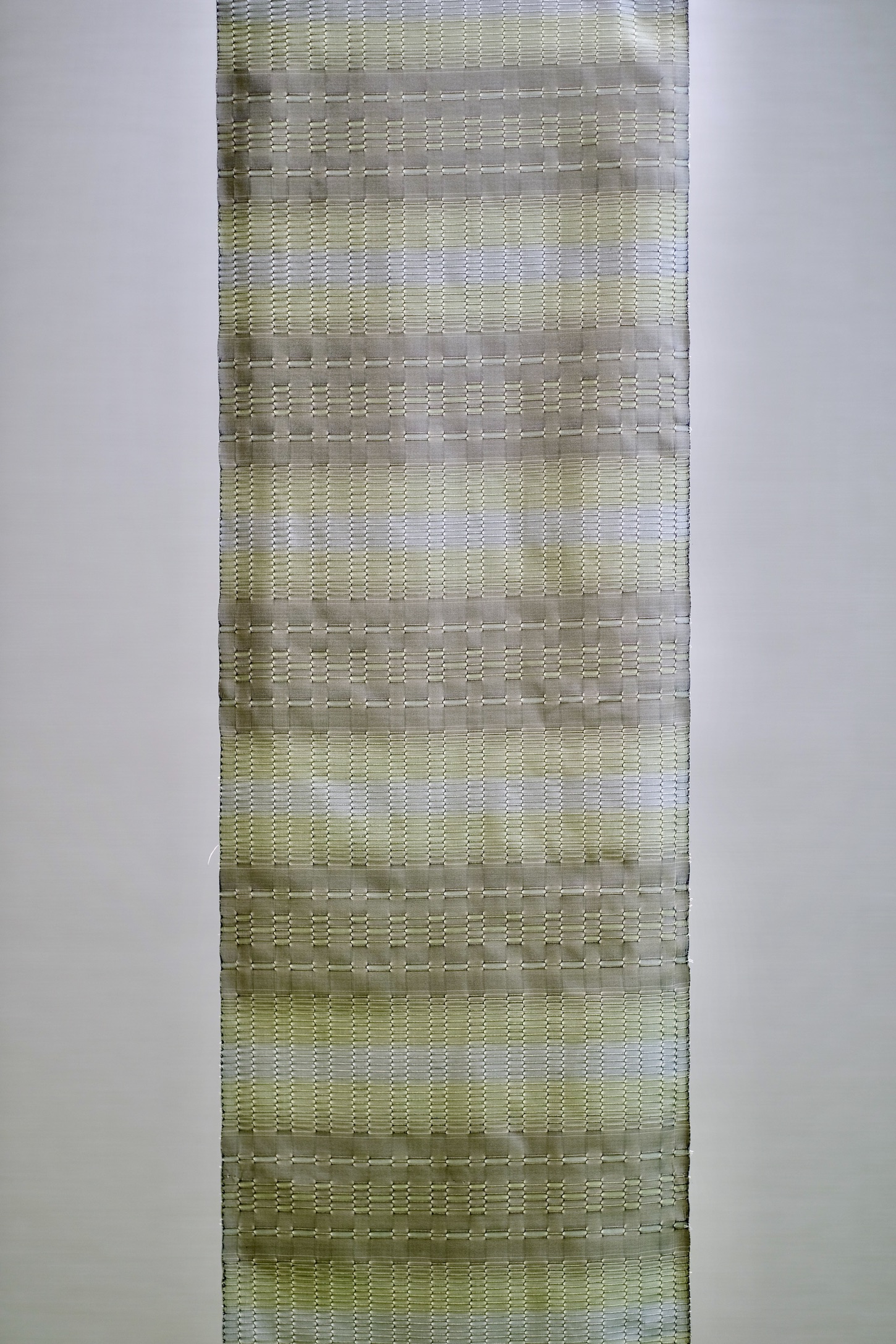 沖縄本島で織られている浮織のことです。17世紀の中頃、中国から琉球に伝えられた紋織物です。平織地の中に部分的に糸の密度をつめて、緯糸に組み合わせずに経糸を浮き出させるため、冴えた光沢が表れます。