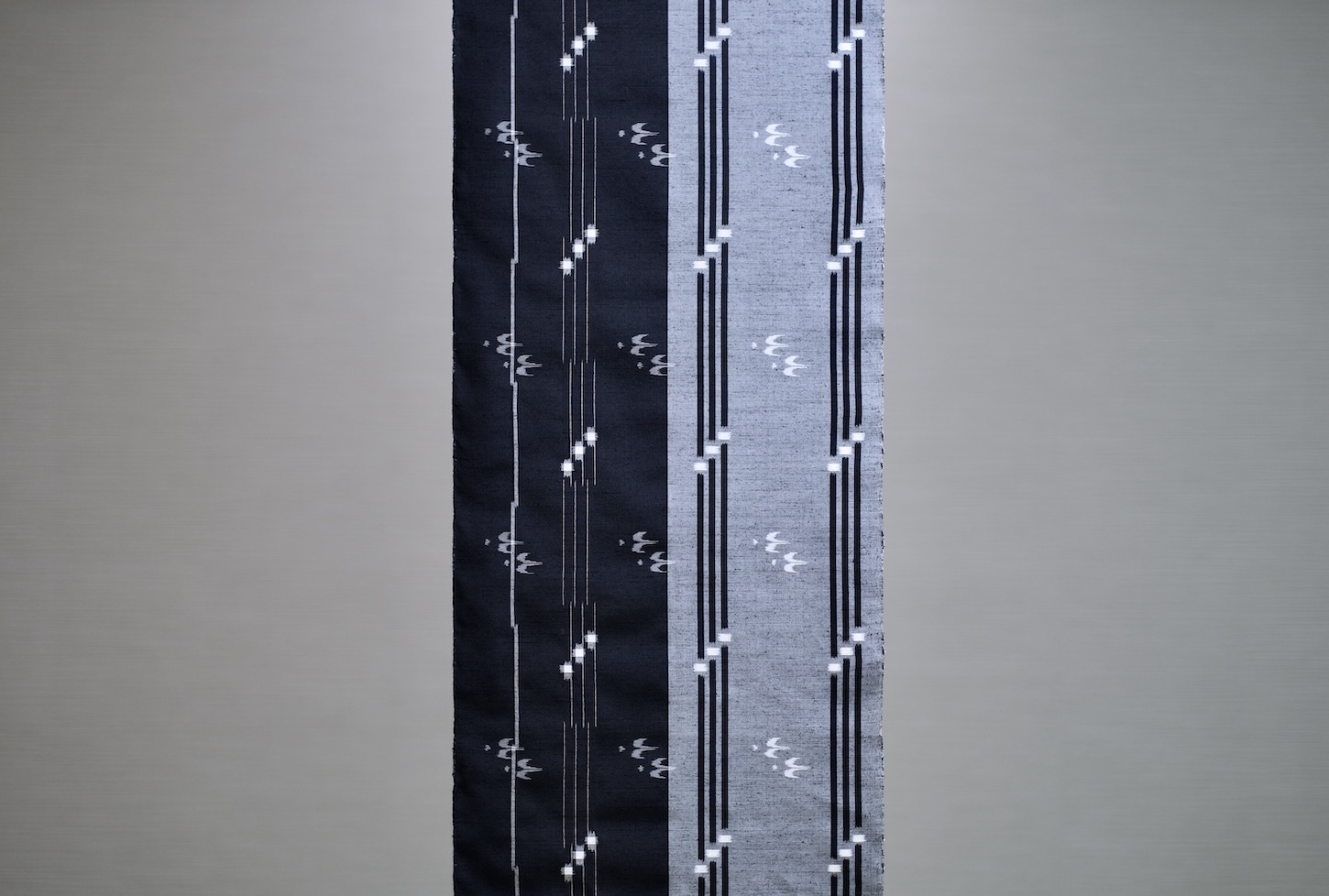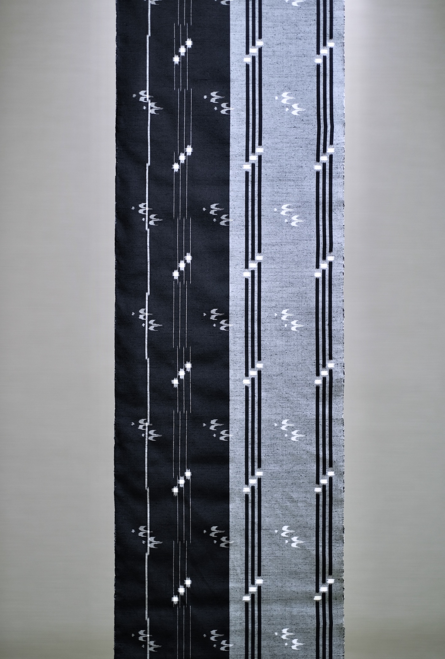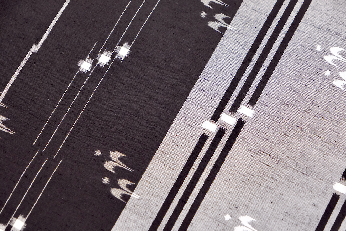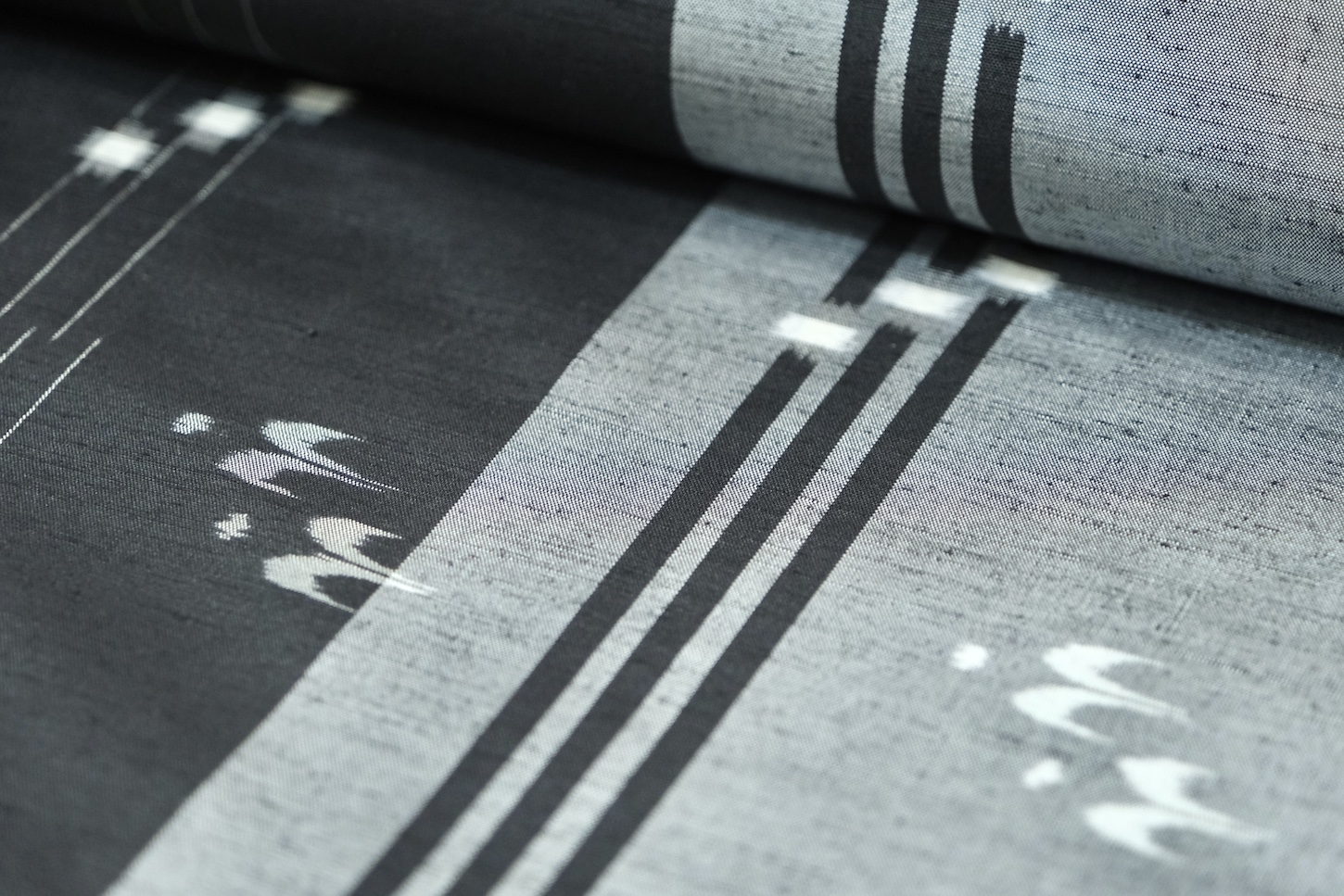 絣柄は経絣、緯絣、経緯絣で表され、現在ではほとんどが手括りの絣糸で、植物染料が多く使用されます。