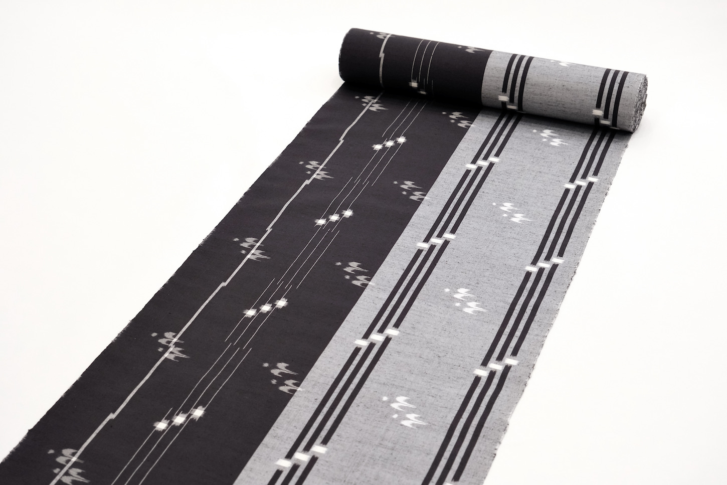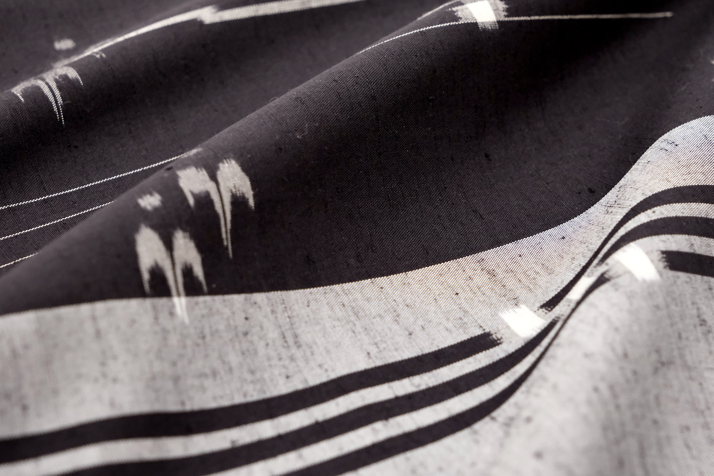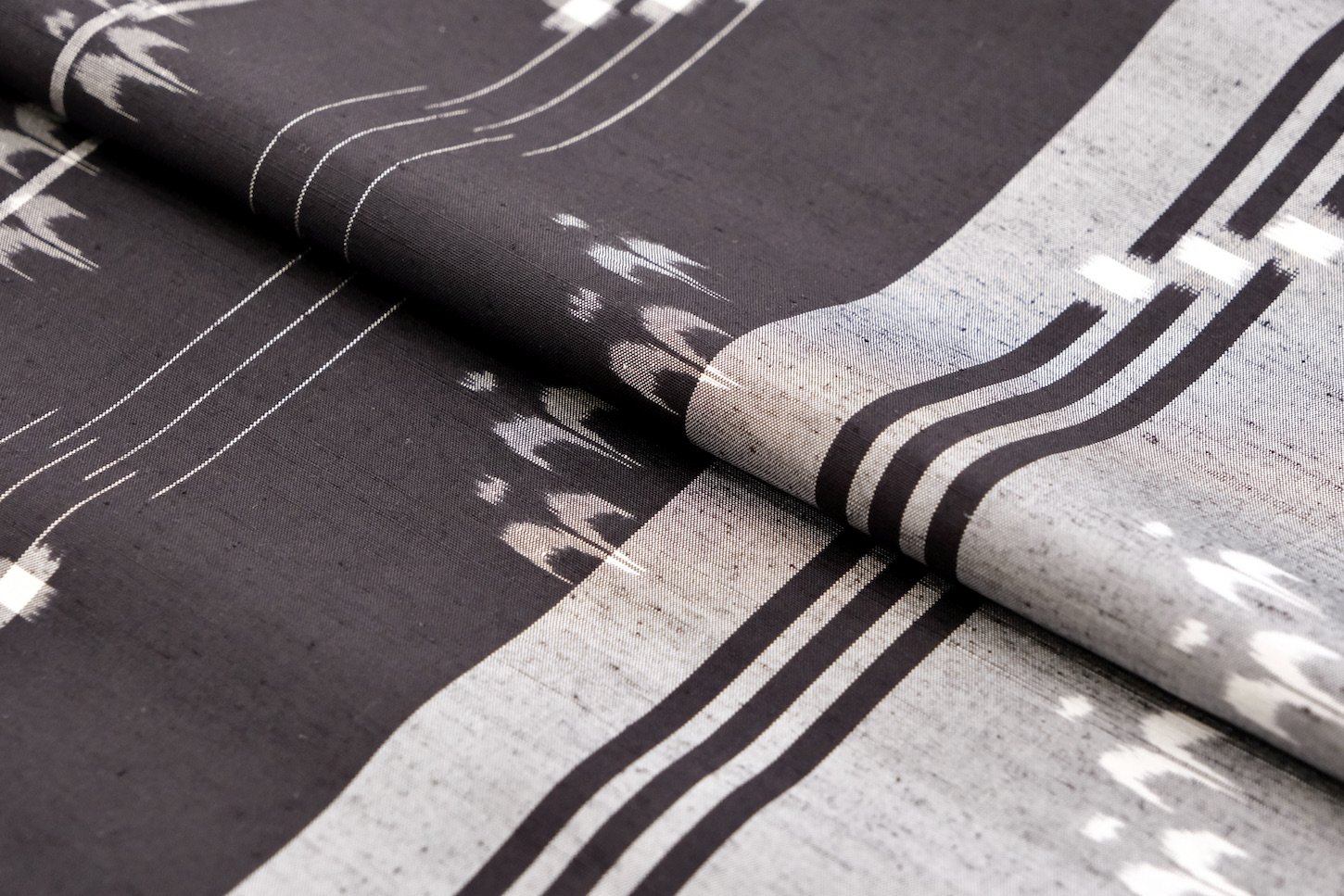 大正時代までは藍染の木綿の紺地に白絣が大部分でしたが、現在は絹素材の色絣がほとんどです。紬糸を用いた袷から強撚糸を用いた夏向きまであります。