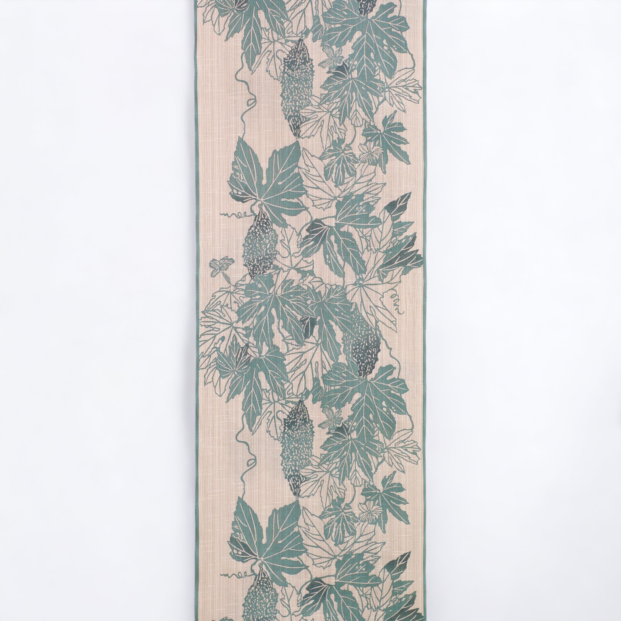 通常、花などの美しいものは柄になりやすいですが、にがうりがモチーフとなることは珍しいと思い、竺仙浴衣に図案化してみました。