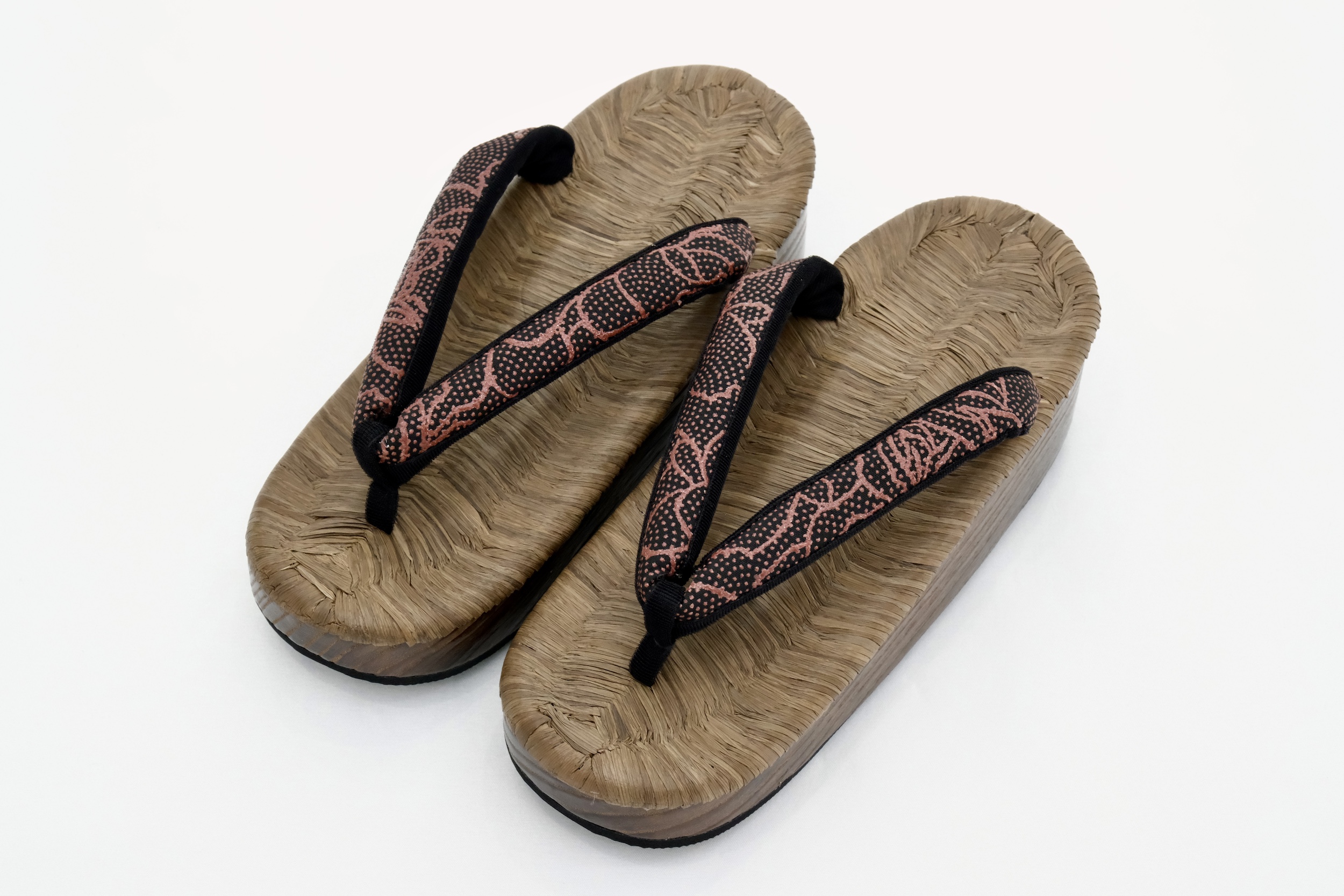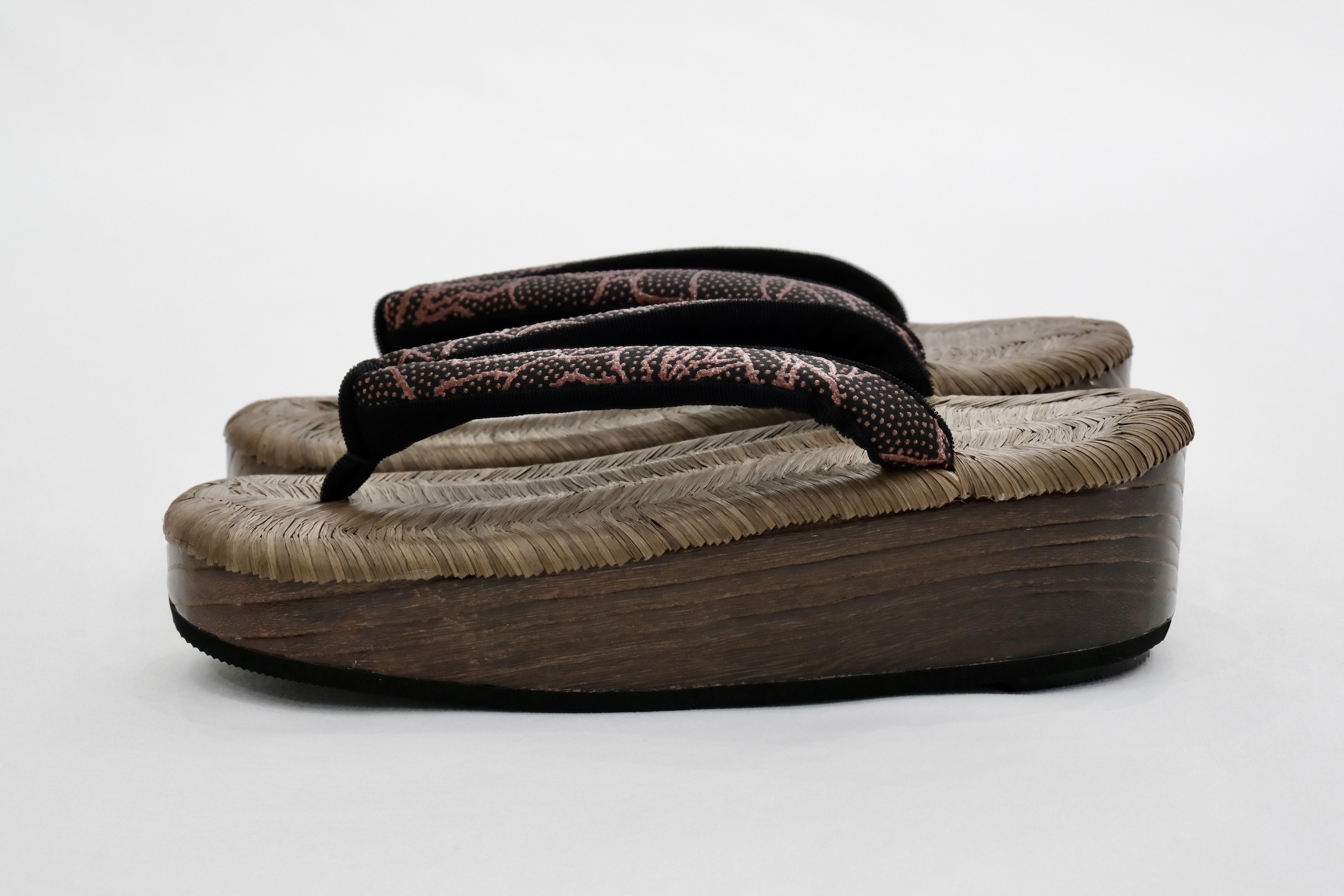 高級素材を使用した鼻緒と高い技術力をもって制作された草履台をお客様のお好みで合わせ、熟練の職人が丁寧に挿げ上げます。