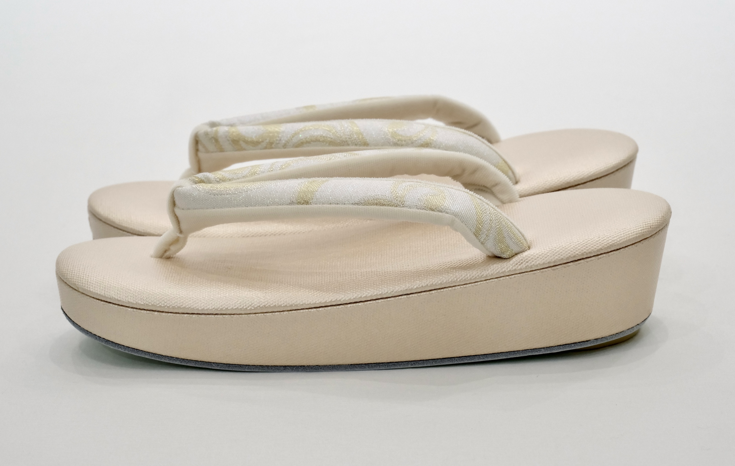 高級素材を使用した鼻緒と高い技術力をもって制作された草履台をお客様のお好みで合わせ、熟練の職人が丁寧に挿げ上げます。