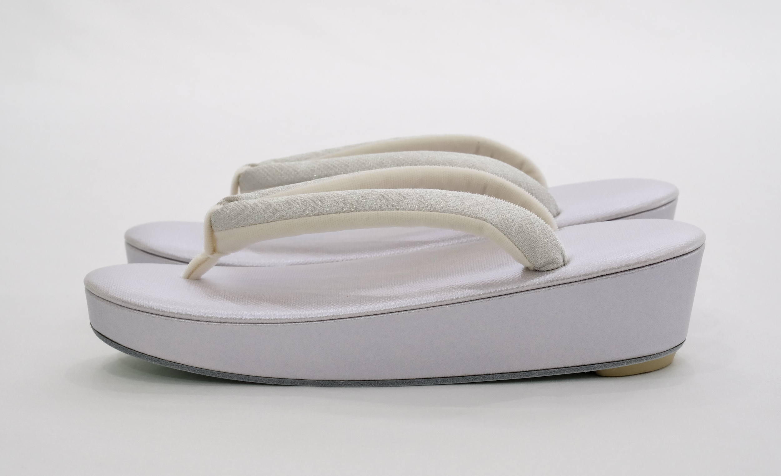 高級素材を使用した鼻緒と高い技術力をもって制作された草履台をお客様のお好みで合わせ、熟練の職人が丁寧に挿げ上げます。