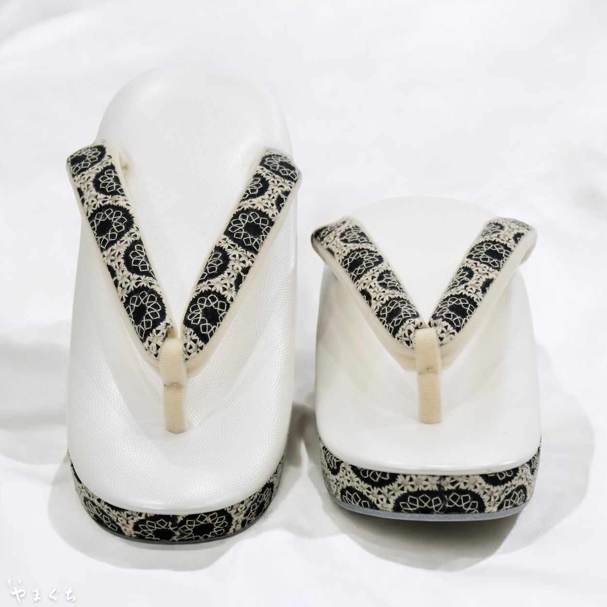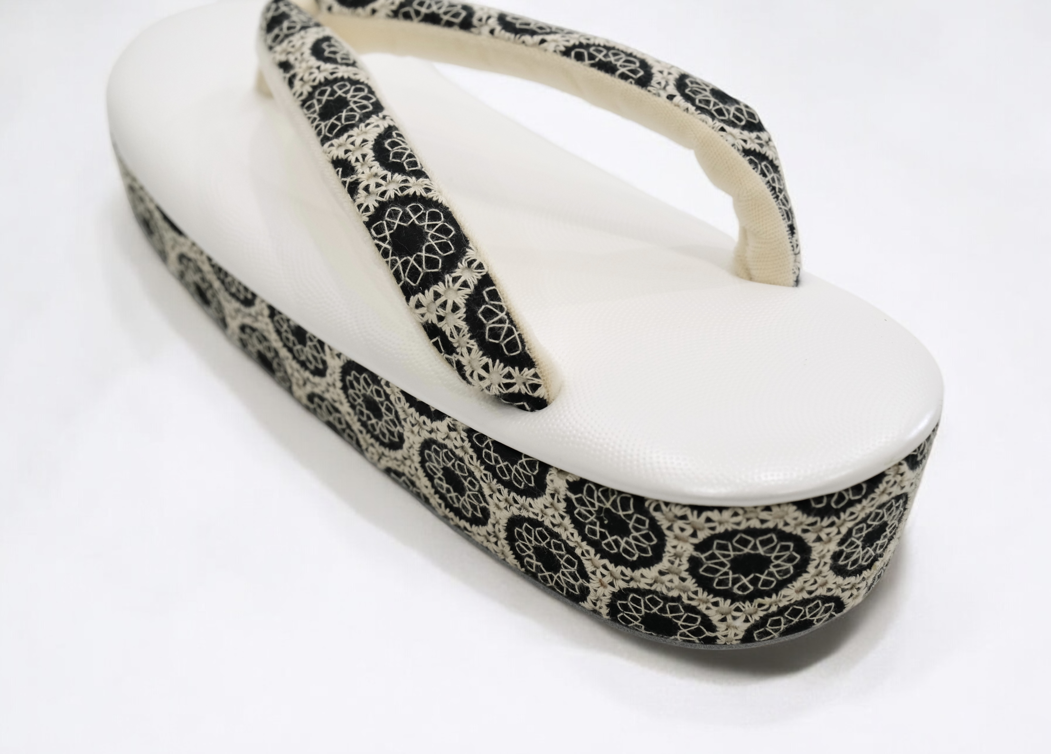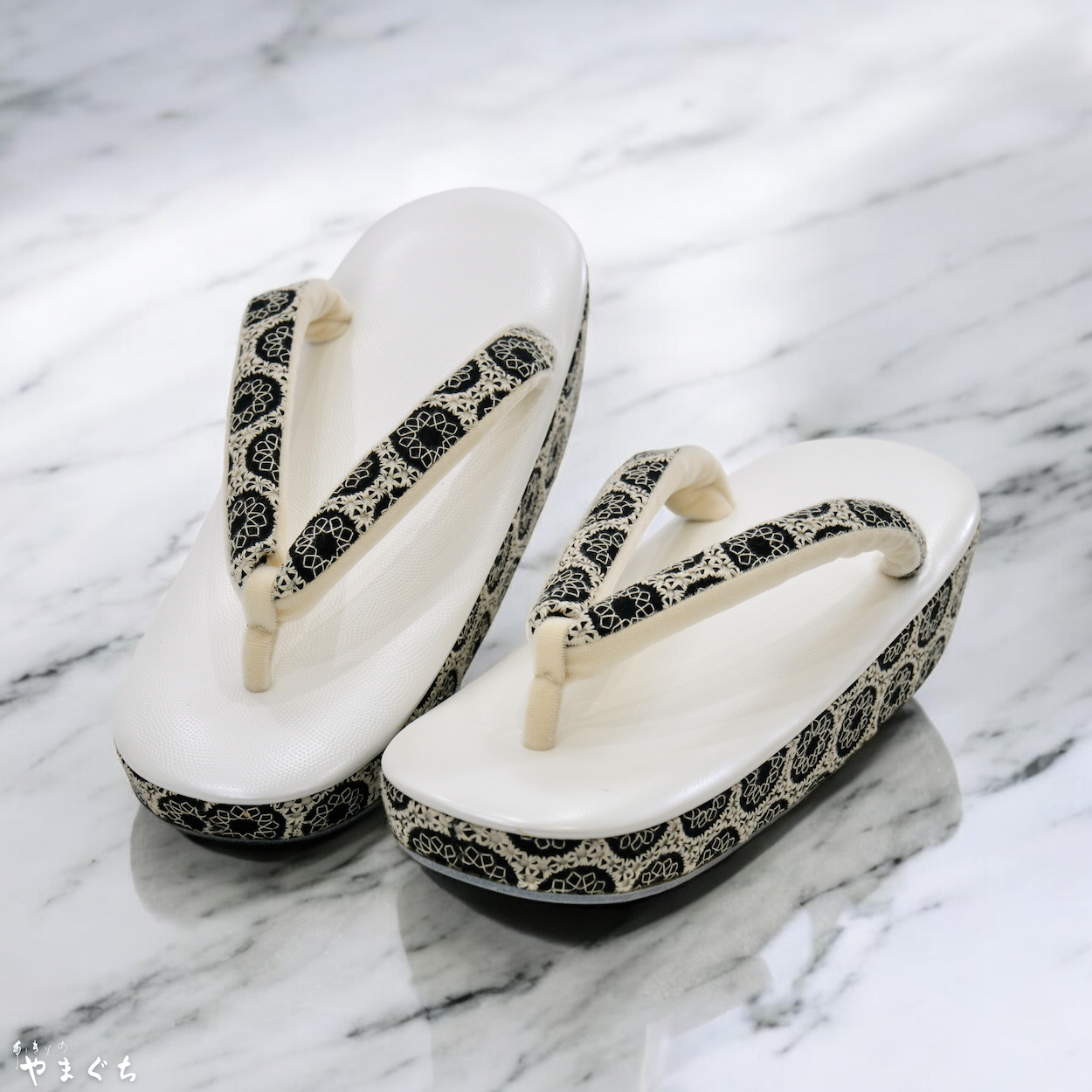 高級素材を使用した鼻緒と高い技術力をもって制作された草履台をお客様のお好みで合わせ、熟練の職人が丁寧に挿げ上げます。