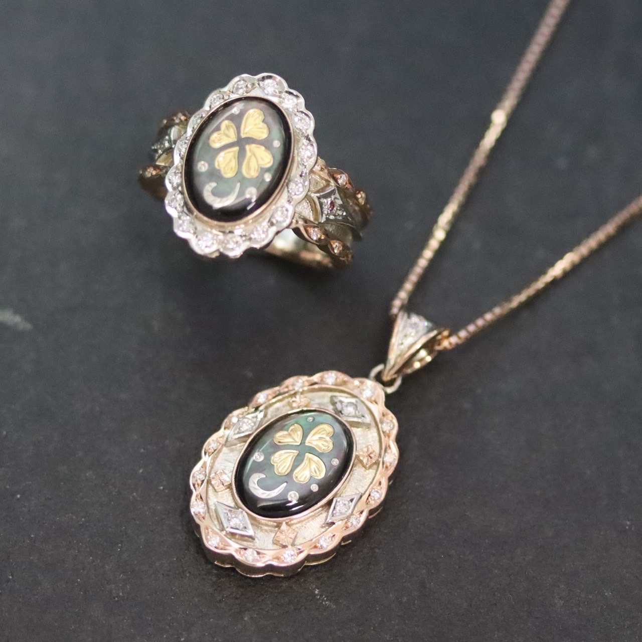 象嵌 黒蝶貝 ペンダント ネックレス リング