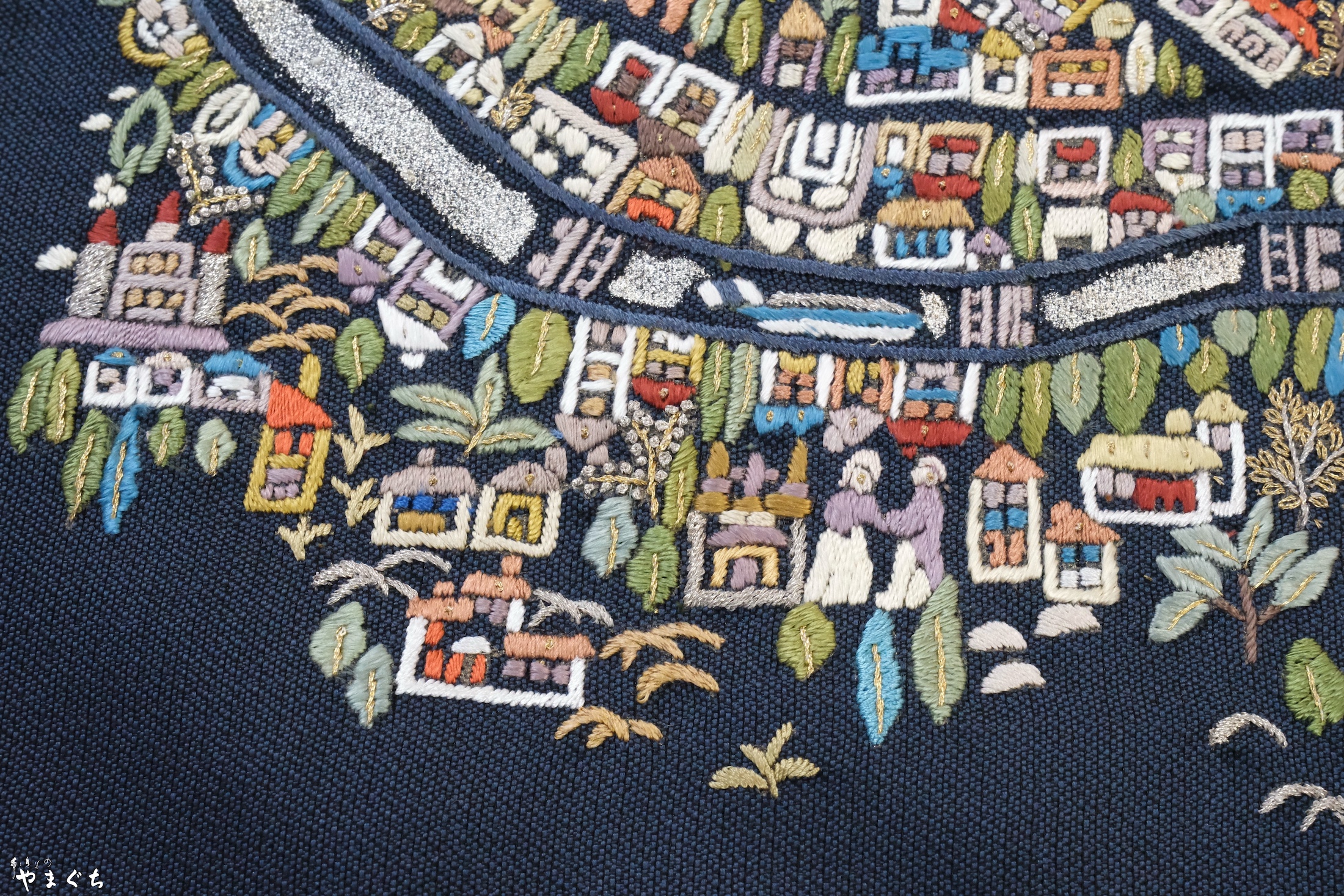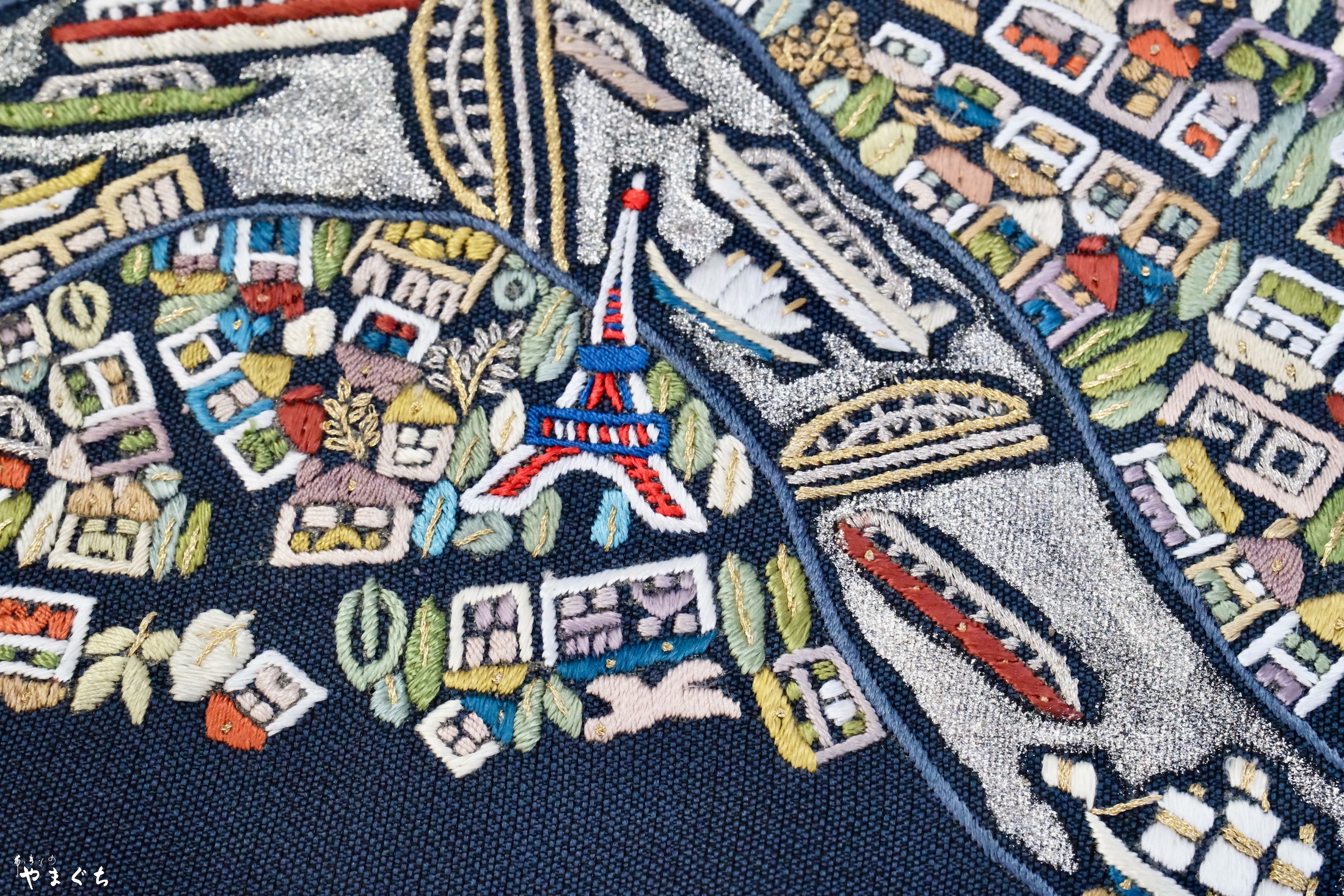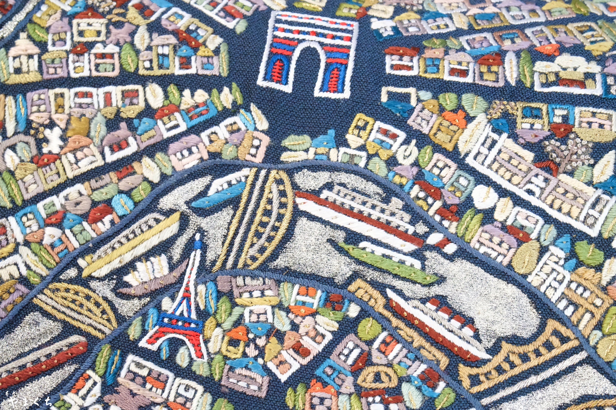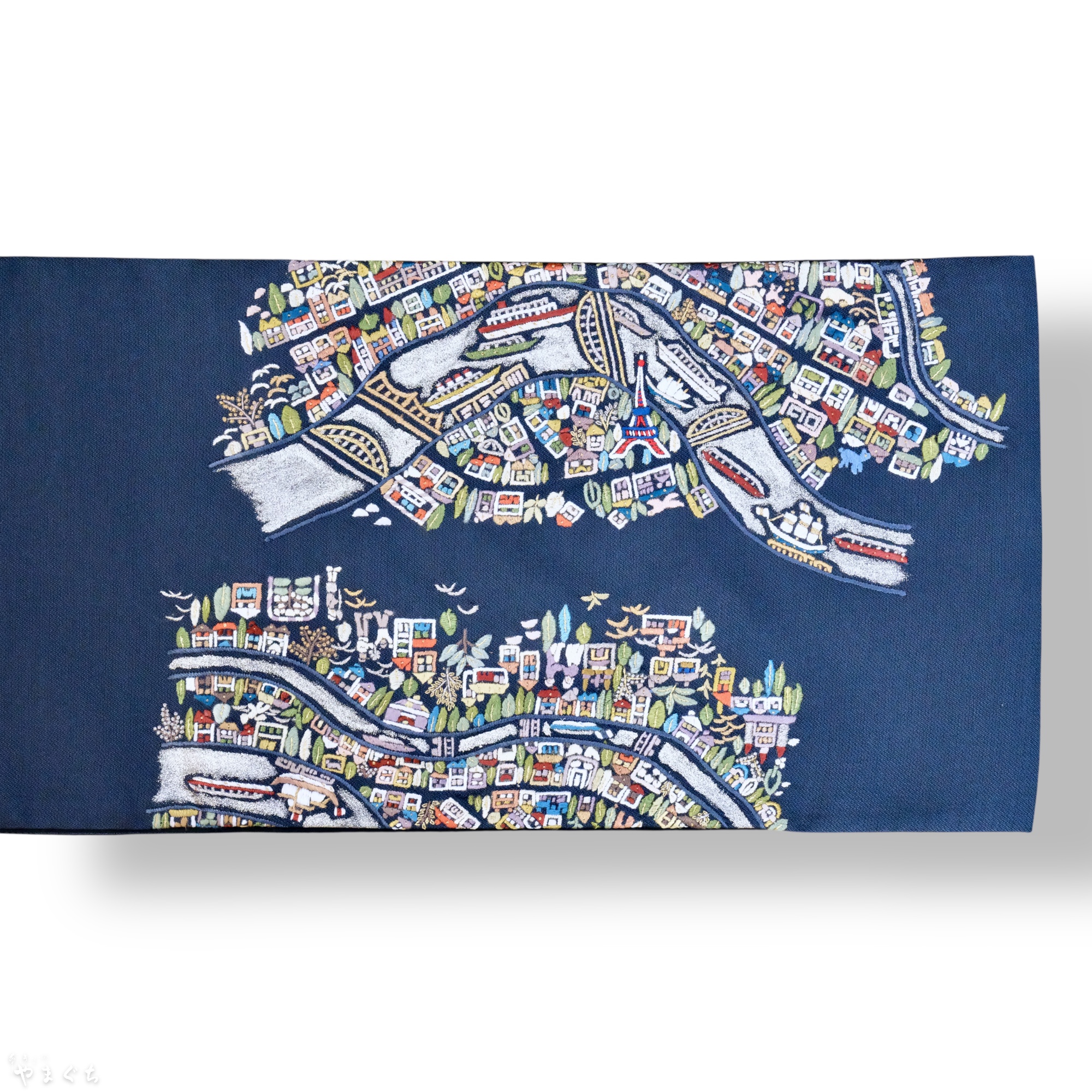 手刺繍 パリの街並み 袋帯