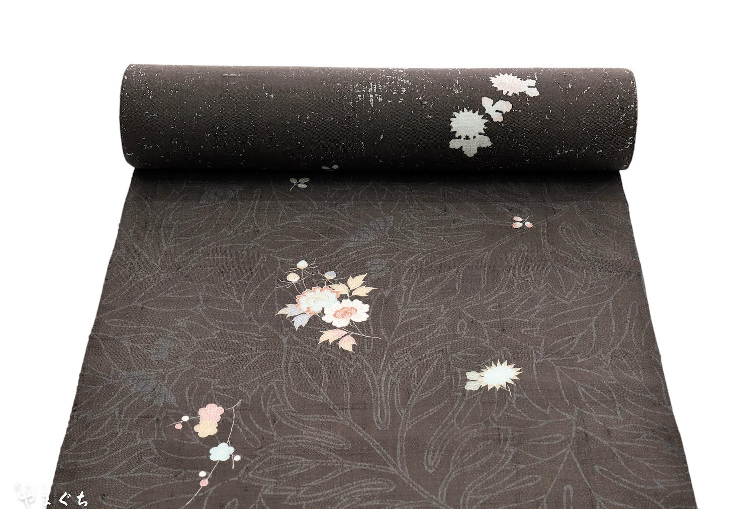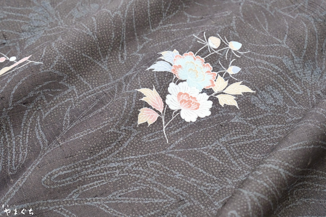 手引きの糸で織り上げた生紬は、無地で染めるだけでも染物では出ないような味わいと表情になり、さらに型摺友禅で「茶や辻」や「古渡更紗」、手描きで「一珍染」で染め上げることによって多彩な柄を楽しむことが出来ます。