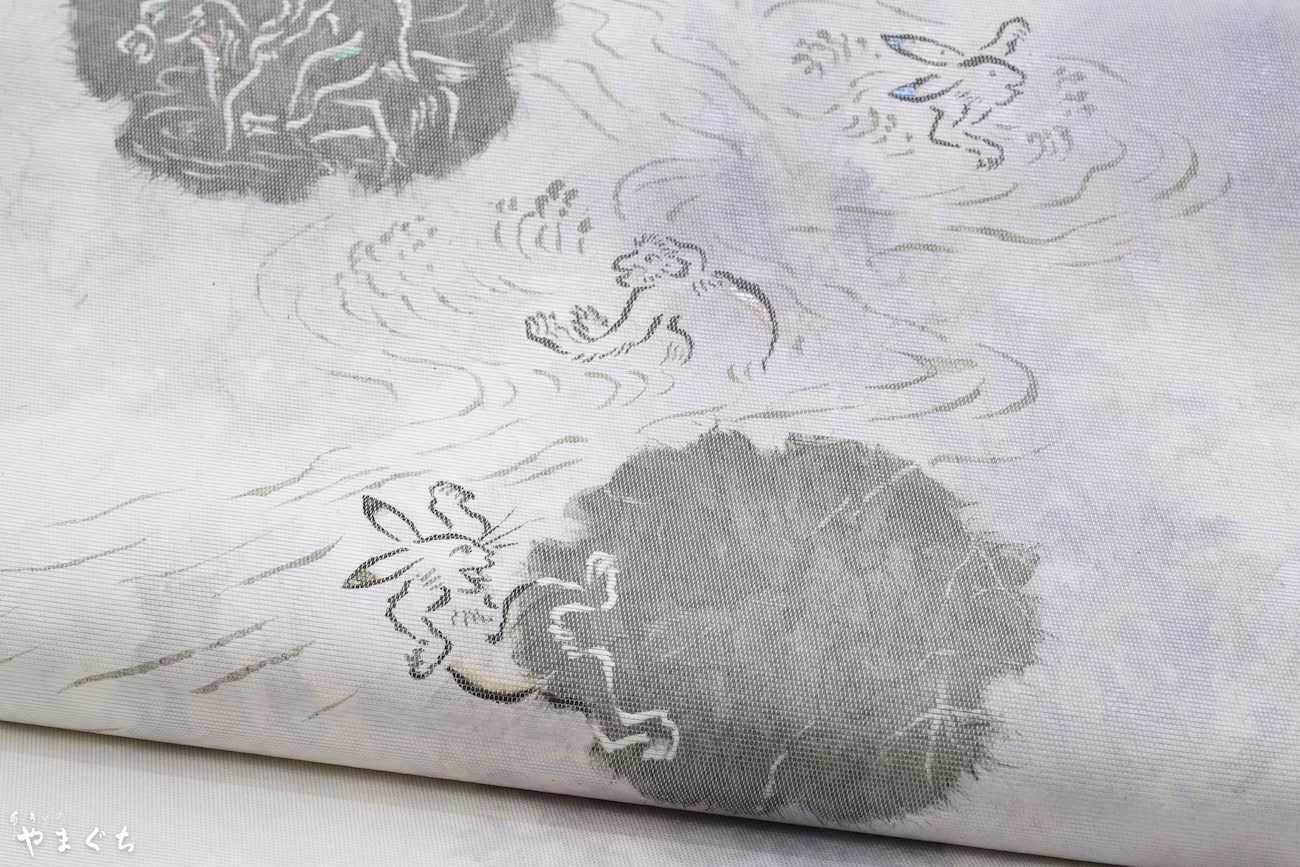 雪輪 鳥獣戯画 絵箔 螺鈿 西陣織 袋帯