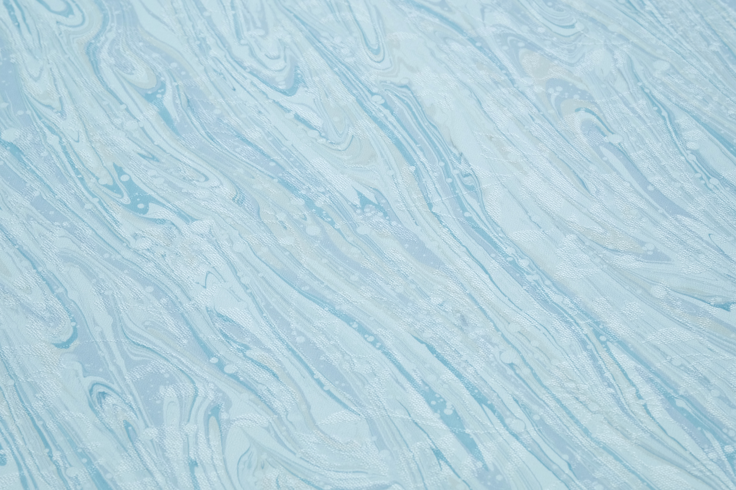 墨流し染め は、水面に浮かした墨汁で波紋上の模様を作り、それを布に転写して染め上げる技法です。